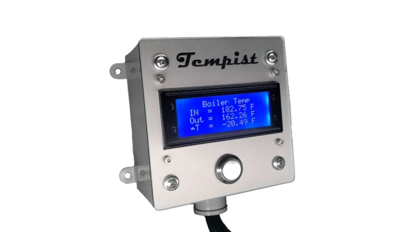 Tempist is the #1 IOT temperature measurement solution. We have our founding in measuring the active water temperature of wood fired boilers. Our sensor displays 3 values.