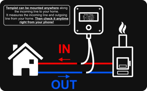 Tempist is the #1 IOT temperature measurement solution. We have our founding in measuring the active water temperature of wood fired boilers. Our sensor displays 3 values.